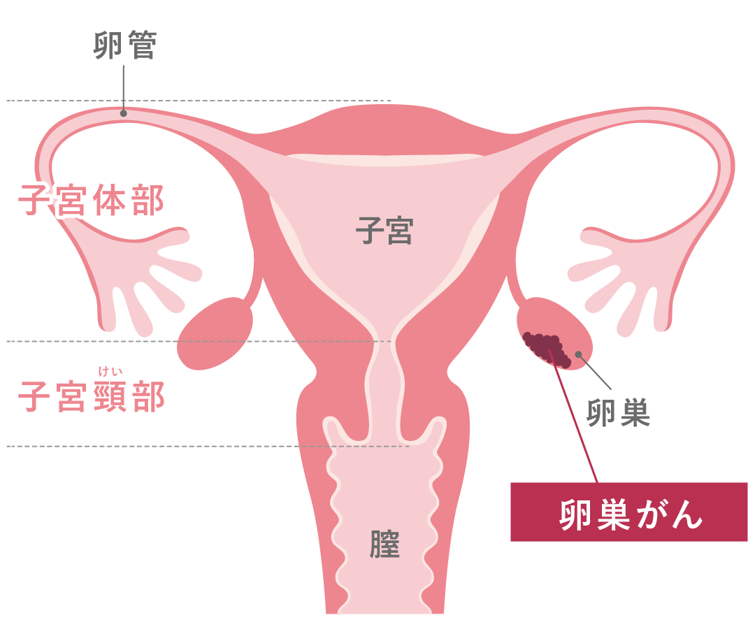 卵巣がんは、子宮の両脇に1つずつ位置する卵巣にできるがんです。卵巣にできる腫瘍は、良性腫瘍や境界悪性腫瘍であることが多いという特徴があります。