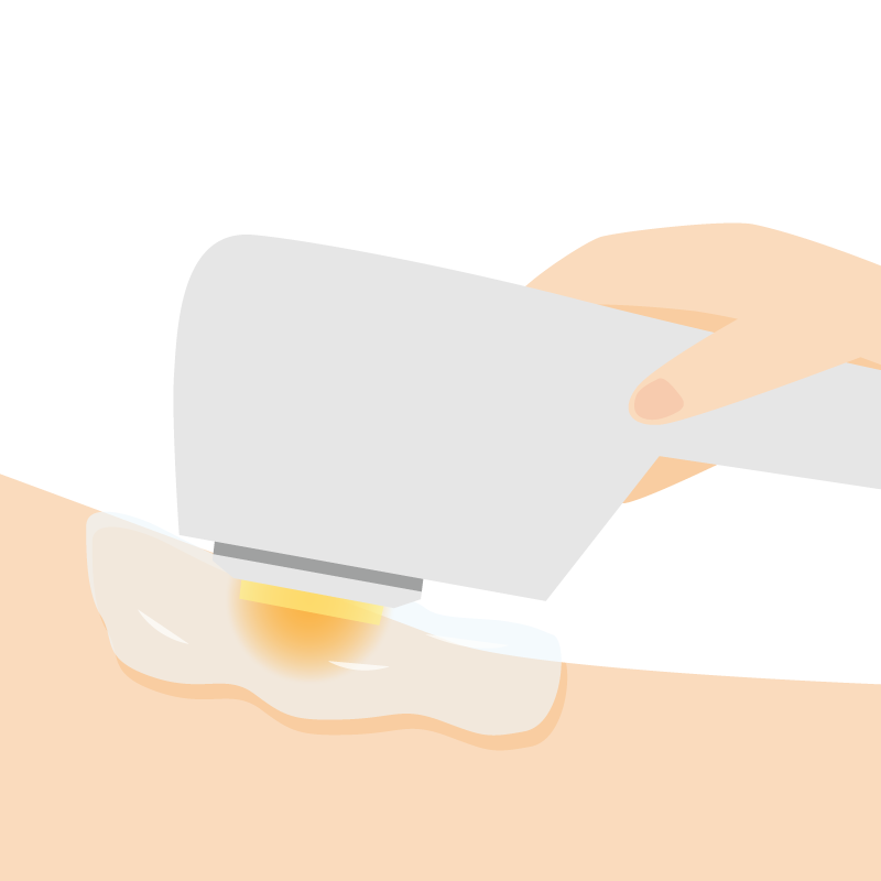 毛周期に合わせて複数回照射する必要がありますが、1回の照射でも反応が高く、エステの光脱毛とくらべ施術期間、回数を大幅に短縮することができます。また、熱エネルギーが毛母、毛乳頭など毛の元になる組織を破壊することで長期的な脱毛が可能です。